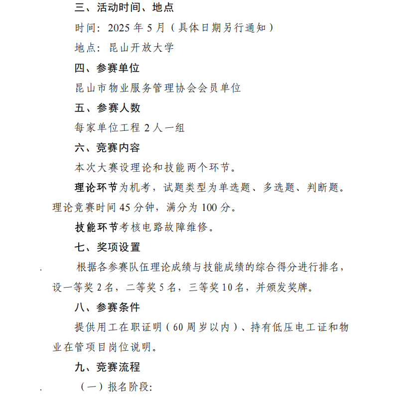 关于组织开展 2025 年度昆山市物业行业 技能竞赛活动的通知