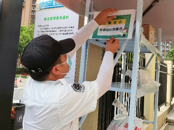为更好的防控疫情,减少病毒传播风险,部分小区提前对业主发布禁止外卖/快递进入小区的通知。此外,响应政府主管部门号召,暂时关闭幸福驿站老年活动室,减少人员聚集。